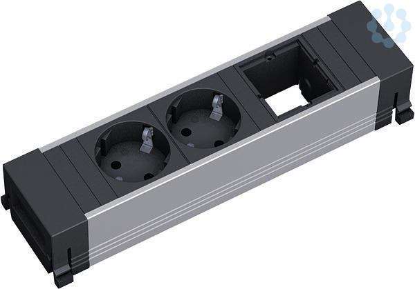 Power Frame Steckdoseneinheit ALU 2xSchutzkontaktsteckdosen schwarz. mit erhöhtem Berührungsschutz. 1xCustom Module leer. Stromeingang: GST18 Festanschluß 0,2m H05VV-F 3G2,5mm² schwarz mit S1:Steckverbinder GST18