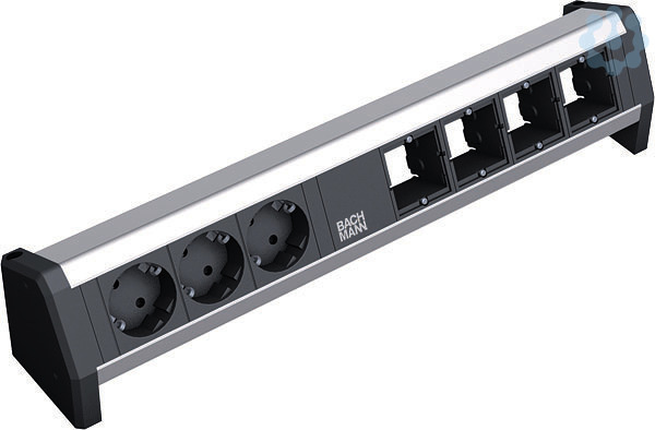 DESK Steckdoseneinheit ALU mit erhöhtem Berührungsschutz 3xSchutzkontaktsteckdose schwarz. 4xCustom Modul leer. GST18 Stromein- und ausgang.