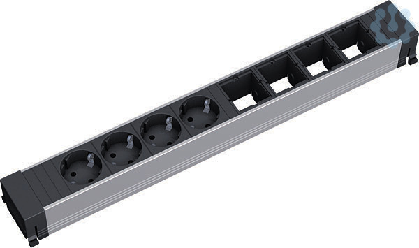 CONFERENCE Steckdoseneinheit ALU Länge: 444mm mit erhöhtem Berührungsschutz 4xSchutzkontaktsteckdose schwarz 4xCustom Module leer. GST18 Stromein- und ausgang. verpackt im Karton