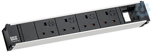 CONI Steckdoseneinheit ALU Länge: 6-fach / 356mm 4xUK 90° 3,15A. 1xCustom Modul leer Stromeingang: 0,20m H05VV-F 3G1,50mm² schwarz mit Wieland GST18 Steckverbinder.
