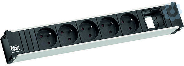CONI Steckdoseneinheit ALU Länge: 6-fach / 356mm 5xUTE/Frankreich mit erhöhtem Berührungsschutz sw. 1xCustom Modul leer. Stromeingang: 0,20m H05VV-F 3G1,50mm² schwarz mit Wieland GST18 Steckverbinder.