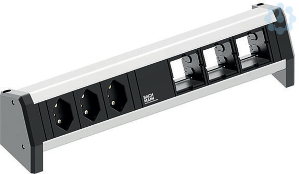 DESK Steckdoseneinheit ALU 3xCH/Schweiz 0° sw. mit Thermosicherung 10A 3xCustom Module leer. GST18 Stromein- und ausgang.