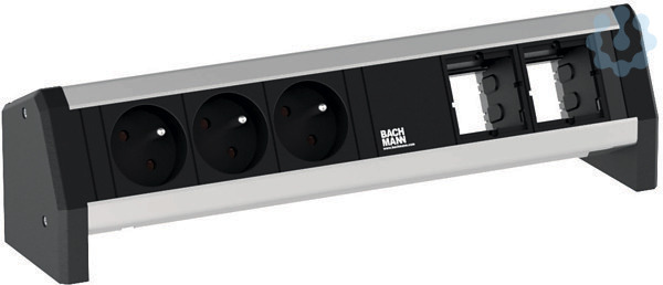 DESK Steckdoseneinheit ALU 3xUTE/Frankreich sw. 2xCustom Modul leer GST18 Stromein- und ausgang. ohne Haltewinkel verpackt im Karton