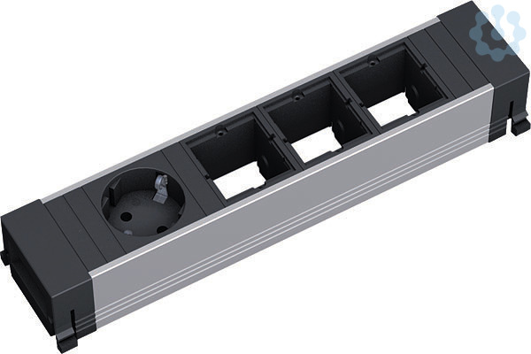 CONFERENCE Steckdoseneinheit ALU Länge: 260mm mit erhöhtem Berührungsschutz. 1xSchutzkontaktsteckdose sw. 3xCustom Module leer. GST18 Stromein- und ausgang.