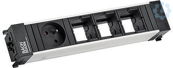 CONFERENCE Steckdoseneinheit ALU Länge: 260mm 1xUTE/Frankreich sw. 3xCustom Module leer GST18 Stromein- und ausgang.
