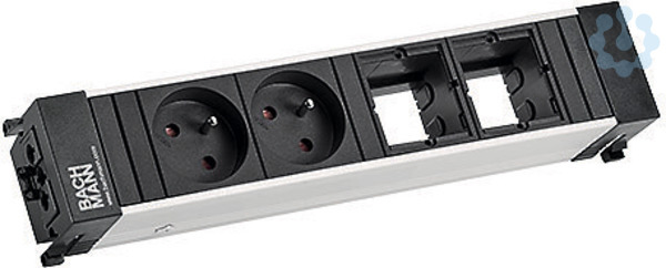 CONFERENCE Steckdoseneinheit ALU Länge: 262,6mm 2xUTE/Frankreich sw. 2xCustom Module leer mit Bachmanndruck GST18 Stromein- und ausgang. verpackt im Karton.