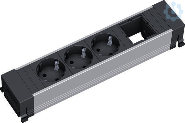 CONFERENCE Steckdoseneinheit ALU Länge: 260mm mit erhöhtem Berührungsschutz. 3xSchutzkontaktsteckdose sw. 1xCustom Modul leer. GST18 Stromein- und ausgang.