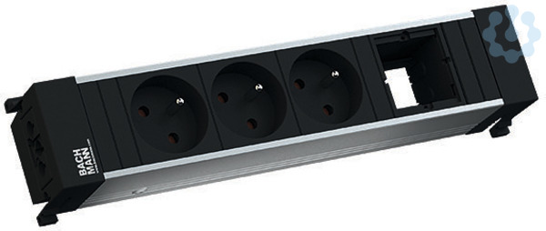 CONFERENCE Steckdoseneinheit ALU Länge: 260mm 3xUTE/Frankreich sw. 1xCustom Modul leer. GST18 Stromein- und ausgang.