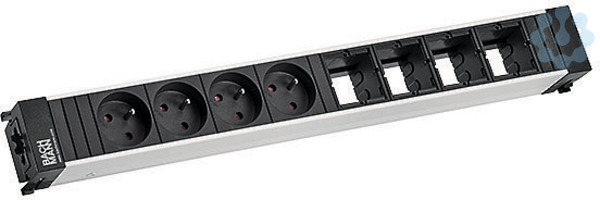 CONFERENCE Steckdoseneinheit ALU Länge: 444mm 4xUTE/Frankreich sw. 4xCustom Module leer GST18 Stromein- und ausgang.