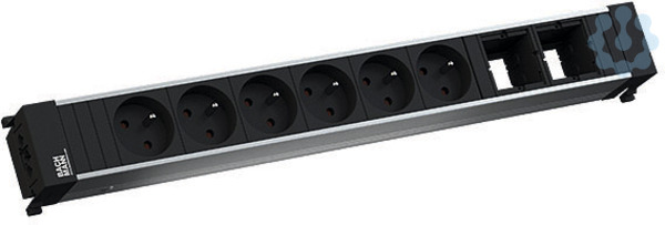 CONFERENCE Steckdoseneinheit ALU Länge: 444mm 6xUTE/Frankreich sw. 2xCustom Module leer GST18 Stromein- und ausgang. verpackt im Karton