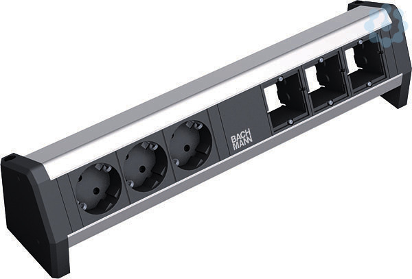 DESK Steckdoseneinheit ALU mit erhöhtem Berührungsschutz 3xSchutzkontaktsteckdose sw. 3xCustom Modul leer. GST18 Stromein- und ausgang.