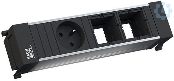 Power Frame Steckdoseneinheit ALU 1xUTE/Frankreich Steckdose 35° schwarz 2xCustom Module leer Stromeingang: 0,2m H05VV-F3G1,5mm² mit GST18 Stecker verpackt im Karton