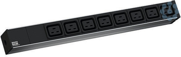 ALU Steckdosenleiste 19° 1HE VM 8xIEC Kaltgerätesteckdosen C19A Zuleitung 2,0m H05VV-F 3G1,5mm² schwarz mit Stecker C20 16A wideranschließbar inkl. Haltewinkel mit Bachmann Bedruckung verpackt im Polyschlauch