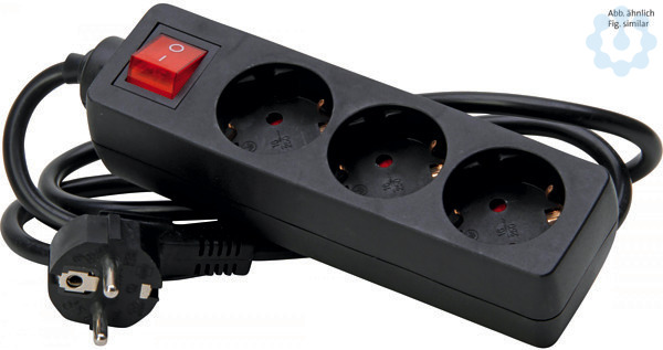 3-fach Steckdosenleiste, mit 2-poligem beleuchtenen Schalter, mit 45°gedrehten Töpfen, mit erhöhtem Berührungsschutz, Zuleitung H05VV-F3G1,5mm², 1,4m, 16A, 250V~, Farbe: schwarz