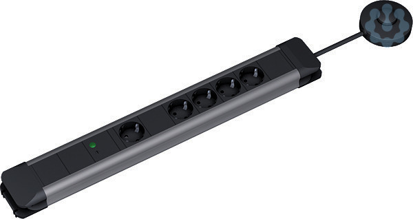 Connectus 4+1x Schutzkontaktsteckdose schwarz/grau mit erhöhtem Berührungsschutz, 1xAbschaltautomatik mit 1er Masterdose und 4 Slavedosen, H05VV-F 3G1.50 2,0m schwarz, nicht öffenbar, nicht wiederanschließbar