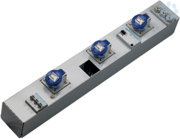 Steckdosenleiste, KVS, 3 x CEE 16 A 3p,3 x Platz für Einphasen-Hutschienenzähler. Steckdosenleiste mit Berührungsschutzabdeckung zum Einbau für Stromverteiler, Festplatzverteilerschränken oder Stromverteilerschränke mit Zählerplatz mit Sammelschienen-System. Steckdosenleisten, zu deren Bedienung Laien Zutritt haben, ist vom Errichter der Anlage der Schutz gegen direktes Berühren sicherzustellen.
