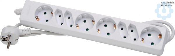 4+4fach Steckdosenleiste, mit vier Euro-und vier Schutzkontaktsteckdosen, mit 45° gedrehten Töpfen, mit erhöhtem Berührungsschutz, Zuleitung H05VV-F3G,5mm², 1,4m, 16A, 250V~, Farbe: arktisweiß