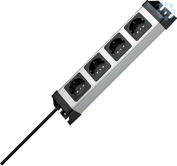 POWERversal 4-fach, erhöhter Berührungsschutz, 90° gedrehte Töpfe, 65mm Topfabstand, anschraubbar, wiederanschließbar, Zuleitung H05VV-F3G1,5mm², Länge der Zuleitung 1,4m, Maße (lxbxh): 352,6x71x51mm, Schutzart IP20, 16A, 250V~, max.3600W, Farbe: silber-schwarz