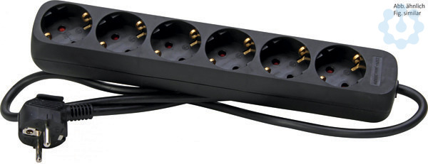 6-fach Steckdosenleiste, mit 45° gedrehten Töpfen,mit erhöhtem Berührungsschutz, Zuleitung H05VV-F3 G1,5mm², 1,4m, 16A,250V~, Farbe: schwarz