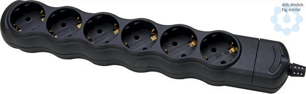 Steckdosenleiste ohne Zuleitung, 6-fach, wiederanschließbar, 16A, 250V~, Farbe: schwarz