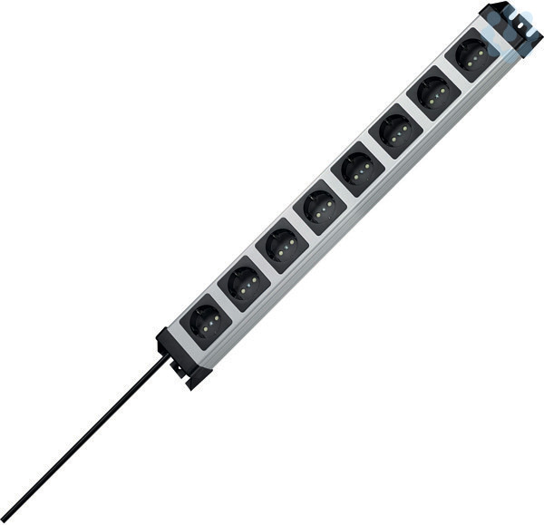 POWERversal 8-fach, erhöhter Berührungsschutz, 90°gedrehte Töpfe, 65mm Topfabstand, anschraubbar, wiederanschließbar, 1,4m Zuleitung H05VV-F3G1,5mm², Maße(lxbxh): 612,6x71x58,3mm, Schutzart IP20, 16A,250V~, max. 3600W, Farbe: silber-schwarz