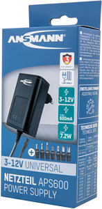 Universal-Netzteil 3 - 12 V DC, inkl. 7 verschiedenen Steckertypen Lieferumfang APS 600 mit 1.8m Kabel, 7- teiliges Sekundärsteckerset