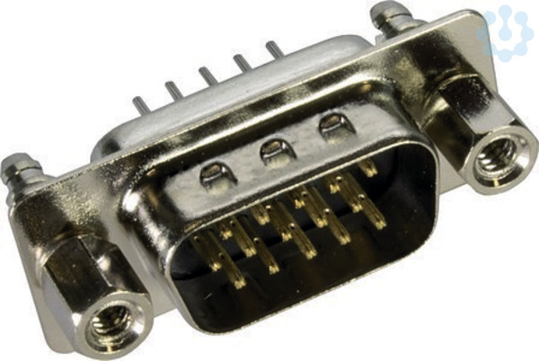 Steckverbinder, Wellenlötanschluss, Bemessungsstrom: 2 A, Stift, Baugröße: D-Sub 1, Thermoplastischer Formstoff, glasfaserverstärkt (PBTP), Stahl, vernickelt, Kontakte: 15, Kupferlegierung