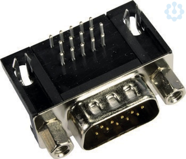 Steckverbinder, Wellenlötanschluss, Bemessungsstrom: 2 A, Stift, Baugröße: D-Sub 1, Thermoplastischer Formstoff, glasfaserverstärkt (PBTP), Stahl, vernickelt, Kontakte: 15, Kupferlegierung