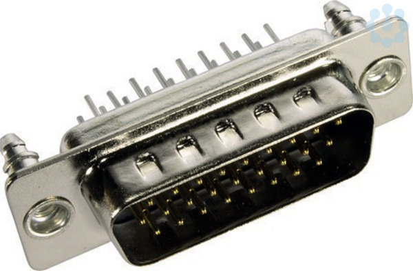 Steckverbinder, Wellenlötanschluss, Bemessungsstrom: 2 A, Stift, Baugröße: D-Sub 2, Thermoplastischer Formstoff, glasfaserverstärkt (PBTP), Stahl, vernickelt, Kontakte: 26, Kupferlegierung
