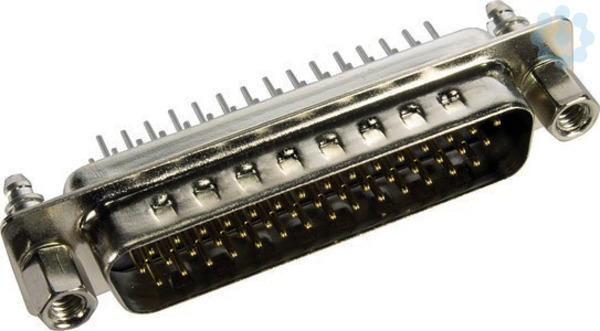 Steckverbinder, Wellenlötanschluss, Bemessungsstrom: 2 A, Stift, Baugröße: D-Sub 3, Thermoplastischer Formstoff, glasfaserverstärkt (PBTP), Stahl, vernickelt, Kontakte: 44, Kupferlegierung