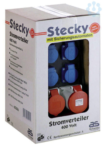 Stromverteiler 400V mit Sicherungsautomaten spritzwassergeschüptzt IP44 mit 4m H07RN-F 5G2,5 32A und je 1xCEE-Steckdose 16A + 32A und 4 Schuko-Steckdosen 250V