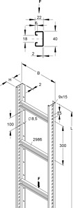 Steigetrasse nach DIN EN 61537, für die Wandmontage, mit durchgehend perforierten und profilierten Seitenholmen, mit eingenieteten Sprossen aus C-Profilen mit 18 mm Schlitzweite. Passende Bügelschellen (BU...). Abmessungen (ca. Maße) H x B : 60 x 500 mm Materialstärke Holm : 2 mm Sprossenabstand : 300 mm Seitenholmlochung : 9 x 15 mm mittiger Abstand : 25 mm Bodenlochung : Ø 8,5 mm mittiger Abstand : 100 mm Tragfähigkeit bei B/2 : 1,75 kN Lieferlänge L : 6000 mm Nutzbarer Querschnitt : 17800 mm² Werkstoff : Edelstahl, Werkstoff Nr. 1.4301, 1.4303