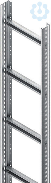 Steigetrasse nach DIN EN 61537, für die Wandmontage, mit durchgehend perforierten und profilierten Seitenholmen, mit eingenieteten Sprossen aus C-Profilen mit 18 mm Schlitzweite. Passende Bügelschellen (BU... und BUK...). Zur Verwendung im Funktionserhalt bitte Zusatzvorschriften beachten! Abmessungen (ca. Maße) H x B : 60 x 600 mm Materialstärke Holm : 2 mm Sprossenabstand : 300 mm Seitenholmlochung : 9 x 15 mm mittiger Abstand : 25 mm Bodenlochung : Ø 8,5 mm mittiger Abstand : 100 mm Tragfähigkeit bei B/2 : 1,75 kN Lieferlänge L : 6000 mm Nutzbarer Querschnitt : 21400 mm² Werkstoff : Stahl, tauchfeuerverzinkt nach DIN EN ISO 1461