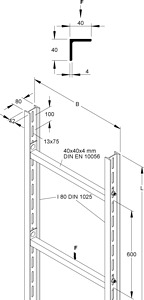 Steigetrasse nach DIN EN 61537, schwere Ausführung, bestehend aus warmgewalzten durchgehend perforierten Profilen I 80 nach DIN 1025 und einschraubbaren Winkeleisensprossen nach DIN EN 10056, einschließlich feuerverzinkten anteilmäßigem Befestigungszubehör. Die durchgehende Perforation der Seitenholme ermöglicht den Einbau zusätzlicher Sprossen, beispielsweise wechselseitig, für beidseitige Belegung. Die Lieferung erfolgt aus transporttechnischen Gründen als Bausatz. Passende Bügelschellen (BW... und BWK...). Lieferung : unmontiert Abmessungen (ca. Maße) H x B : 80 x 880 mm HolmAbmessungen : 80 x 42 mm Abmessungen der Winkeleisensprosse : 40 x 40 x 4 mm Sprossenabstand : 600 mm Anzahl der Sprossen : 10 Stück Holmlanglochung : 13 x 75 mm mittiger Abstand : 100 mm Tragfähigkeit bei B/2 : 1 kN Lieferlänge L : 6000 mm Nutzbarer Querschnitt