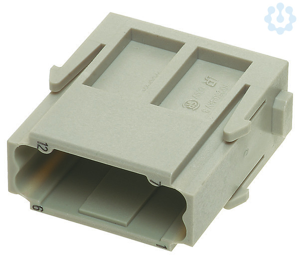 Han DD Modul, Crimpanschluss, Stift, Kontakte: 12, Leiterquerschnitt: 0,14...2,5 mm², Bemessungsstrom: 10 A, Polycarbonat (PC), RAL 7032 (kieselgrau)
