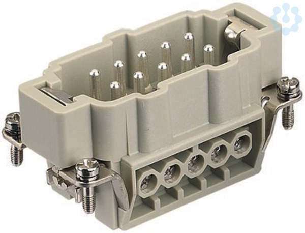 Einsätze, Schraubanschluss, Stift, Polycarbonat (PC), RAL 7032 (kieselgrau), Bemessungsstrom: 16 A, Baugröße: 10 B, Kontakte: 10, Leiterquerschnitt: 0,75...2,5 mm², Kupferlegierung, versilbert