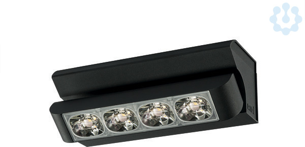 LED-Strahler in eigenständigem Design für direkte Deckenanbaumontage. Strahlergehäuse aus Aluminiumdruckguss, weiß (ähnlich RAL9016), bzw. schwarz (ähnlich RAL9005) pulverbeschichtet. Lichteinheit über Kipp-Gelenk an dem Gerätegehäuse mit integriertem LED-Treiber angebracht, um 80° stufenlos schwenkbar für eine flexible Anwendung. Lichteinheit mit 4 LED-COB-Modulen ausgestattet für hohe Lichtströme. Die speziell für die Regalbeleuchtung entwickelten, hochwertigen Optiken in Form von TIR-Linsen sorgen für eine effiziente Lichtlenkung. Schutzart IP20, Schutzklasse I. Strahler mit einer Lichteinheit. Montage: Direkter Deckenanbau durch Vormontage des Deckenbleches, anschließend einhängen und fixieren.