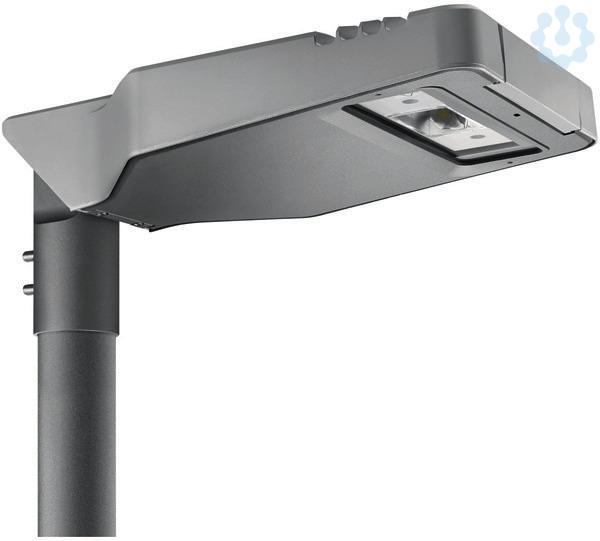 Strassenleuchte in LED- Technik Road 5, Gehaeuse aus Aluminium-Druckguss mit Klimamembran. Farbe Leuchtenkoerper Aluminium / Glasrahmen Graphitgrau, Reflektoren aus bedampften Polycarbonat, mit Flachglasabdeckung aus gehaertetem Sicherheitsglas, Leuchten werkzeuglos zu oeffnen, Die Elektrokomponentenplatte ist werkzeuglos austauschbar. Die Leuchte ist fuer Mastaufsatz mit einem Neigungswinkel von -10° bis +20° und bei Mastansatz mit einem Neigungswinkel von -20° bis +10° einsetzbar.