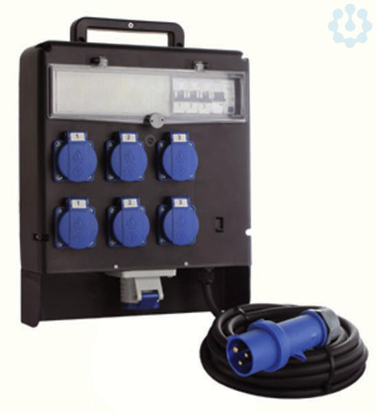 6 Schukosteckdosen 230V/16A Absicherung:1 FI-Schalter 25A, 30mA, 2polig