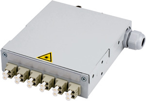 Ausführung: Singlemode/Multimode Farbe: blau Gehäuse: STX Tragschienen-Verteiler Kupplungen: 6xLC Duplex, Keramikhülse/Kunststoffgehäuse Schutzart: IP20