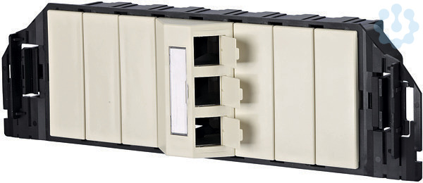 Anschlusseinheit zum Einbau in Geräteeinsätze im Unterflurbereich für Einzelmodule in Keystonebauform, passend zu Unterflur-Geräteeinsätzen von OBO Bettermann (Ackermann) und einzelne Typen von :hager (Electraplan Solutions), Bauform GB3, inkl. Modulträger für Keystone Module, Abdeckkappen und Blindabdeckungen, Steckrichtung der Module 45° nach oben geneigt, mit Sichtfenster für beiliegende Beschriftungseinlage, Beschriftungsbogen 209 x 294 mm siehe Zubehör, integrierte Staubschutzklappen (auch farbig erhältlich), Farbe: Gerätebecher schwarz, Abdeckteile perlweiß, Varianten: 3 Port, 6 Port, 9 Port, 12 Port