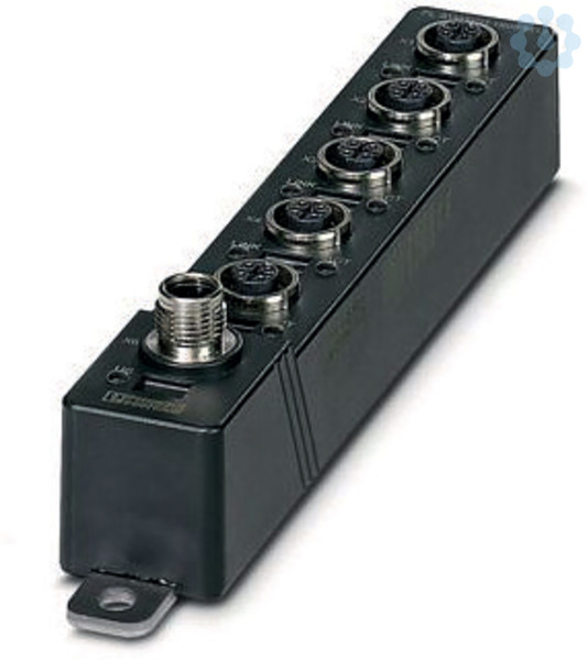 Ethernet Switch, 5 frontseitige Ethernet-Ports im M12-Format, automatische Erkennung der Datenübertragungsrate von 10 oder 100 MBit/s, Kopplung von Netzsegmenten mit unterschiedlichen Bitraten, Autocrossing-Funktion, Schutzart IP67