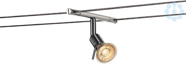 Aus Stahl bestehender, dreh- und schwenkbarer Strahler SYROS für das Niedervolt Seil-System. Durch den verbauten G5,3 Sockel ist der Strahler für Halogen- sowie LED-Leuchtmittel geeignet. Der maximal kompatible Seilabstand beträgt 15,5cm.