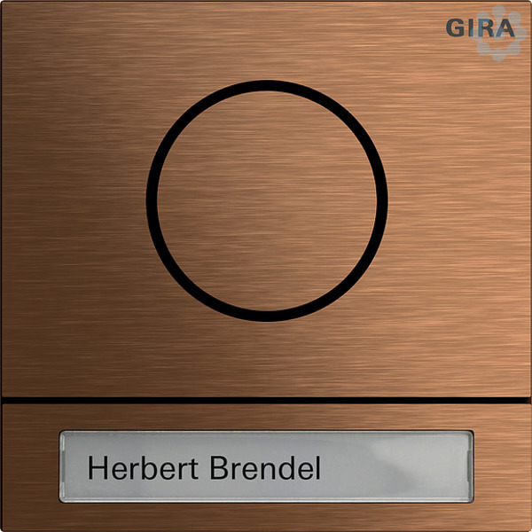 Bronze Das Gira System 106 ist ein Installationssystem aus Echtmetall in puristisch-edlem Design ohne Rahmen, basierend auf einem Grundmaß von 106,5 × 106,5 mm und einer geringen Aufbauhöhe von 28,7 mm. Mit der modularen Türstation im Gira System 106 beginnt Gastlichkeit schon vor der Haustür. Von Ruftasten-, Sprach- und Kameramodul bis hin zum Info- und Blindmodul präsentieren sich alle Funktionen in einem stimmigen Gesamtbild. Im Dunkeln sorgen die hinterleuchteten Ruftasten mit Beschriftungsfeld für gute Lesbarkeit und eine ansprechende Erscheinung.