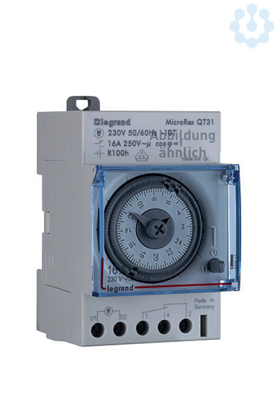 Legrand MicroRex QT31, analoge Tageszeitschaltuhr mit Quarzmotor (Ganggenauigkeit +/- 2,5 Sek/Tag, Gangreserve 100 Std.), für den Verteilereinbau, 1 Kanal, Betriebsspannung 120 V 50/60 Hz, mit Handschalter: EIN-Automatik-AUS, mit unverlierbaren Schaltsegmenten, Zeiger vorwärts und rückwärts drehbar, dadurch sehr leichte Einstellung von z.B. Sommer- und Winterzeit, Deckel plombierbar, kürzeste Schaltzeit: 30 Min.. Schaltausgang: 1 Wechsler.
