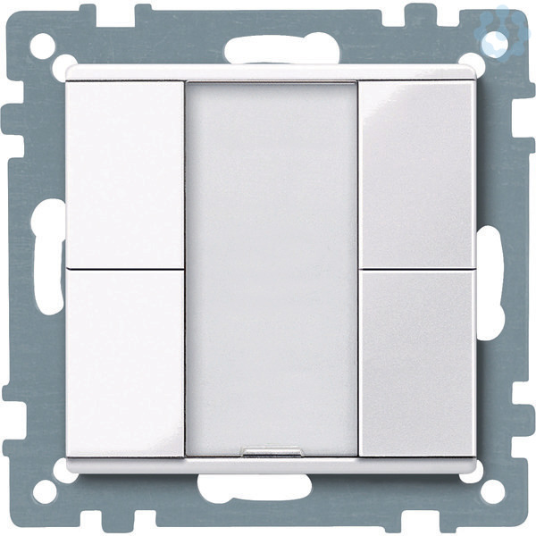 Im Design System M. Mit integriertem Busankoppler. Taster mit 4 Bedientasten, Betriebs-, Statusanzeige und Schriftfeld. Die Betriebsanzeige kann auch als Orientierungslicht verwendet werden. Das Gerät wird über eine Busanschlussklemme mit der Busleitung verbunden. Softwarefunktionen KNX Schalten, Umschalten, Dimmen (ein-/zweiflächig), Jalousie (ein-/zweiflächig). Flanken löst 1,- 2-, 4- oder 8-Bit-Telegramme aus (Unterscheidung kurze/lange Betätigung). Flanken mit 2-Byte-Telegrammen (Unterscheidung kurze/lange Betätigung), 8-Bit-Schieberegler, Szenenabruf, Szenenspeicherung, Sperrfunktionen. Zubehör Beschriftungsbogen für Taster 6183xx Lieferumfang Mit Putzschutzhaube. Mit Busanschlussklemme. Material Thermoplast brillant, antibakteriell. Glatte und selbstdesinfizierende Oberfläche mit antibakterieller Wirkung. Farbe ähnlich RAL 9016. Farbe aktivweiß glänzend.