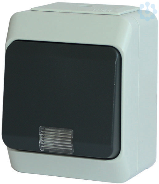 Wechseltastrer für AP-Montage, mit schraubenlosen Anschlüssen, mit Kontrolllampe, Prüfzeichen: VDE, Farbe: Grau/Anthrazit, Schutzart: IP44, 10 A, 250 V&ac..