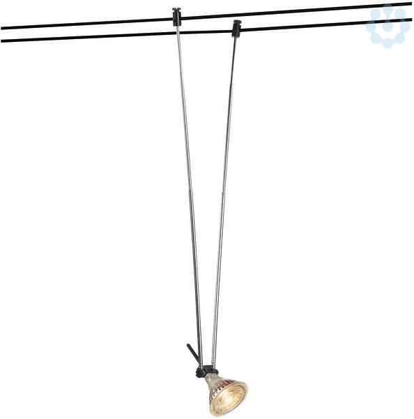 TELESKOP Strahler für das Niedervolt Seil-System dessen Halogen- sowie LED-Leuchtmittel kompatible GX5,3 Fassung an zwei schwenkbaren, Teleskopstäben befestigt ist. Der kompatible Seilabstand liegt bei 15,5cm.