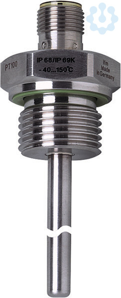 (nach DIN EN 60751, Klasse A). Einbaulänge EL 150 mm. Messbereich -40...150 °C / -40...302 °F. Druckfestigkeit 160 bar. G 1/2. M12 Steckverbindung