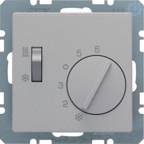 , Wechsler m. Schalter Heizen/Kühlen, Q.1/Q.3/Q.7, alu samt, lack. Temperaturregler mit Zentralstück, Wippschalter, Aufdruck, Regulierknopf mit Temperaturbereichsbegrenzung, Regelbereich der Temperatur einstellbar, Temperaturmessung über internen Temperaturfühler. Für Heiz- oder Kühlbetrieb, z.B. für Stellantriebe stromlos geschlossen, mit thermischer Rückführung, ohne Spreizkrallen, mit Steckklemmen. Wird die eingestellte Temperatur erreicht, wechselt der Kontakt. Hinweis: Neutralleiter erforderlich! Geeignet für Anlagen mit Wärmepumpe.